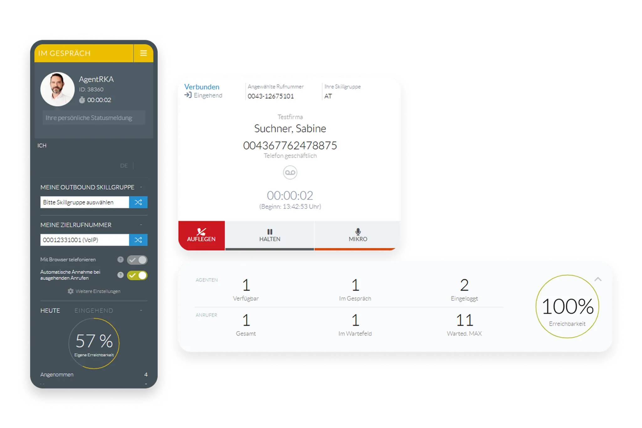 Produktiv ab dem ersten Klick: Mit der Agent App melden sich Ihre Teams direkt im Browser (WebRTC) an und behalten stets alles im Überblick.