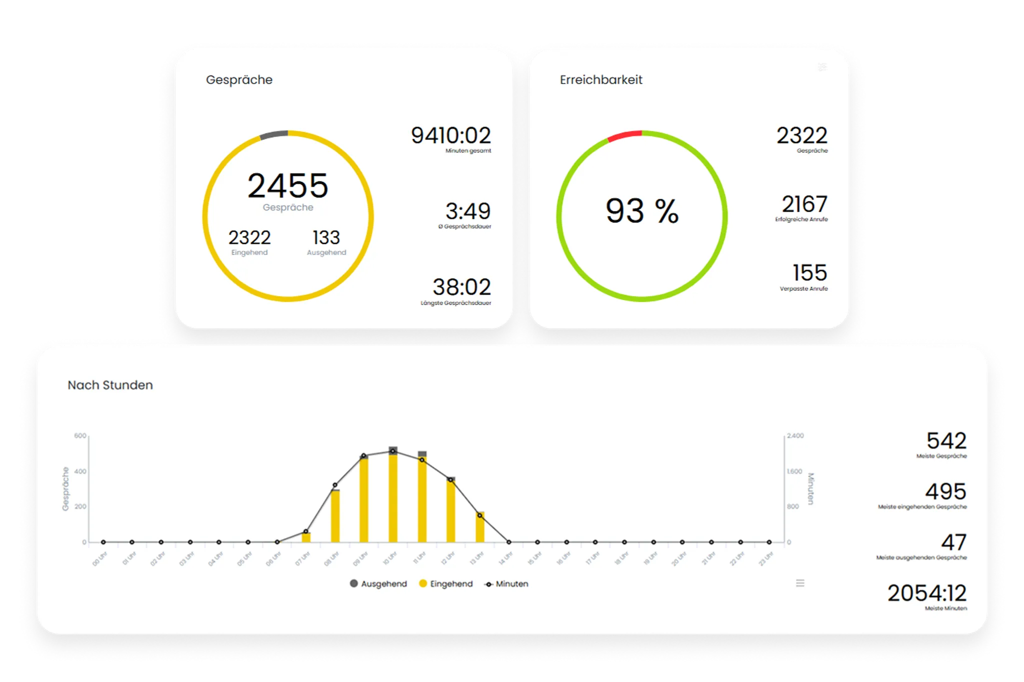 Ja – im Live Center erhalten Sie detaillierte Reports zu Anrufdauer, Wartezeiten, Erreichbarkeit und Agentenleistung – sowohl in Echtzeit als auch als Export für Ihre Auswertungen.